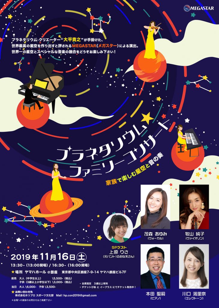 「プラネタリウム★ファミリーコンサート 家族で楽しむ星空と音の奏」でMEGASTARを投影します(大平貴之の出演はありません)。
